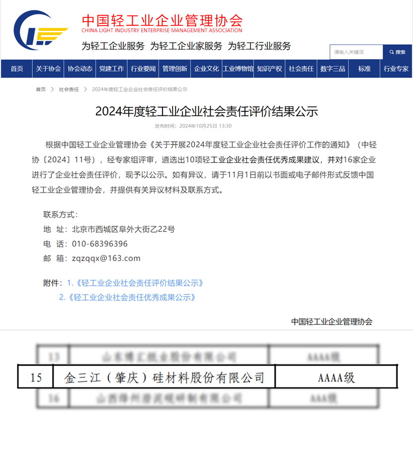 04 Jin Sanjiang Rated as a 2024 Light Industry Enterprise Social Responsibility AAAA Level
