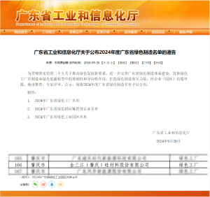 Recently, the Guangdong Department of Industry and Information Technology concluded the public notice on the 2024 Guangdong Green Manufacturing List, and Jin Sanjiang successfully made it to the 2024 “Guangdong Green Factory” list.