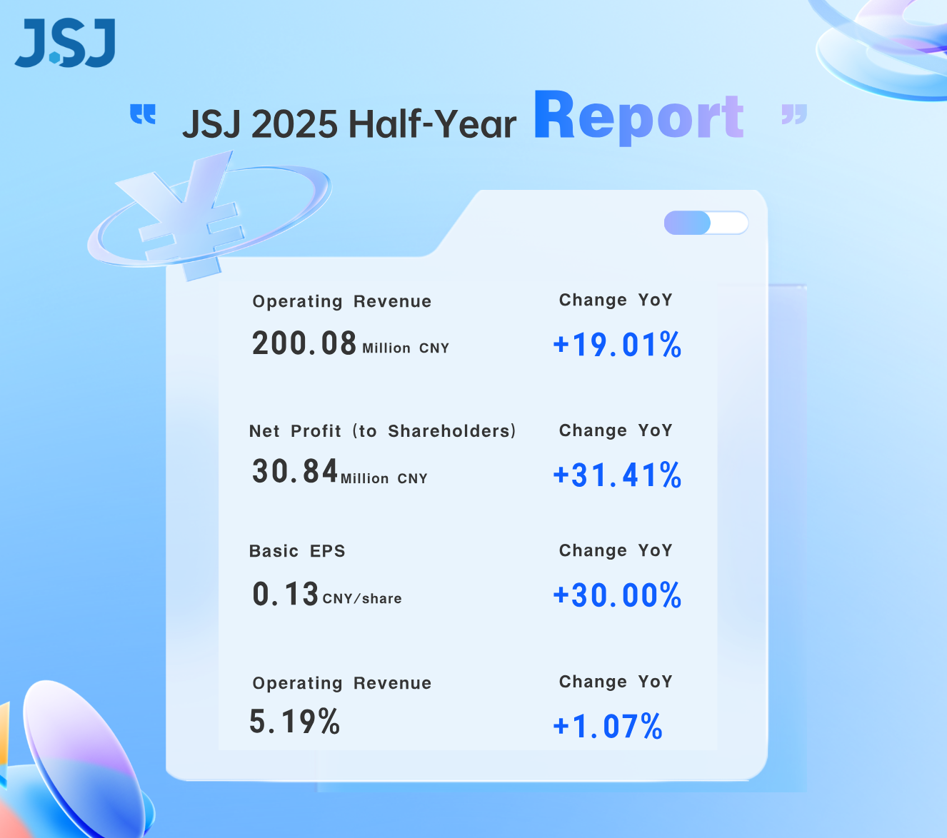 Revenue increased by 19.01% year-on-year! Net profit rose by 31.41% year-on-year! JSJ releases its first-half 2025 results.